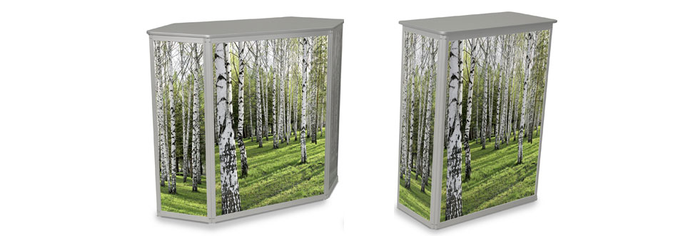 Stand Up-Theken laden zum Verweilen ein, auf Messen und Ausstellungen ebenso wie am Point of Sale. Dabei sind sie nicht nur ein Treffpunkt, sondern bieten gleichzeitig große Präsentationsflächen für Logos, Bilder und Werbeaussagen.